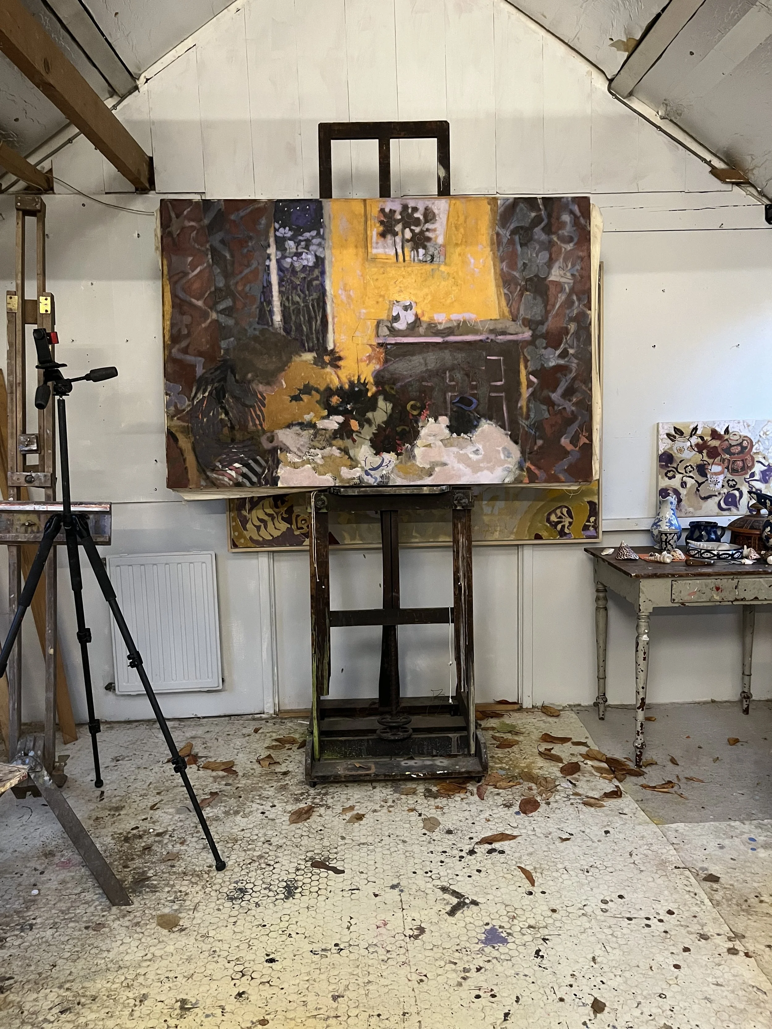 Self Portrait with Dahlias. Oil on Canvas . Work in progress December 2025